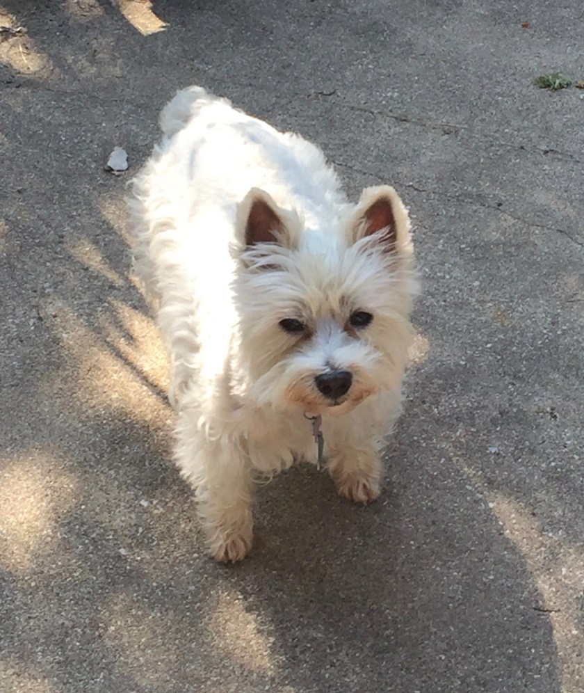 Rooni came into my life in February, 2004, in the middle of a snowstorm. She is a Westie, her proper name is Lady McInnes, but she will always be my little macaroon. She is gentle, loving, smart, demanding, stubborn…spoiled. Small enough to share the bed, to pick up when she gets too stubborn, and take just about anywhere. I love it when I pick her up and her front paws wrap around my wrist and hold on tight. We’ve been holding on tight to each other for the past 15 years.