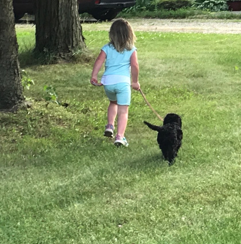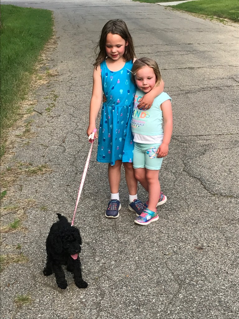 The grand girls had fun welcoming Bella to the group. We were worried that Lyddie, who had been afraid of Rooni in past visits, would be bothered by Bella’s need to bounce and bite, but she seemed to understand puppyhood and even Rooni was no longer an issue. Amelia handled walking responsibilities with her own growing maturity- understanding puppy goofiness, but making sure that Bella stayed safe.