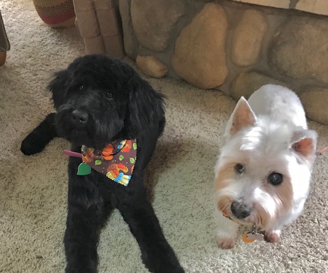 And then there were two dogs in our household! One of the black puppies in the picture above is a female pup who eventually wended her way into our hearts and became our newest family member.