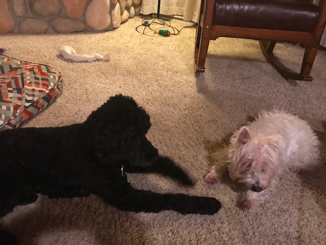 We are having the usual issues with two dogs in a household. Mooching on each others food is a big one. Interesting that the other dog’s food is always way more tasty! Bella would like so much for Rooni to be a youngster and bounce around with her, but our old girl leads a very simple life now, so we try to distract Bella when she is most active.